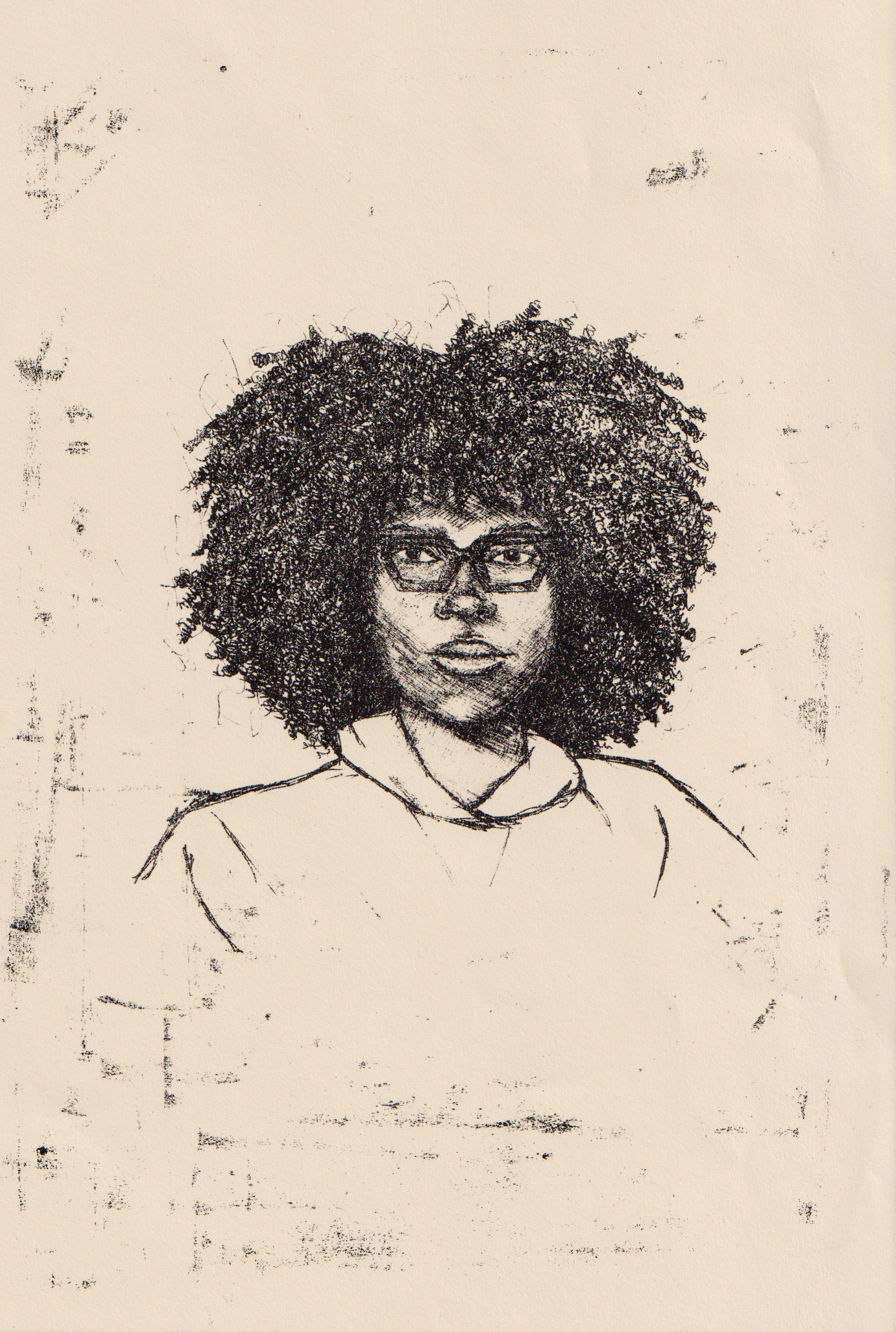 As another test, I sketched a self-portrait using a biro. I was able to achieve some tonal variation and the image printed pretty much as it appears on the plate. You can see the scumming here. I printed with a spoon which, while simple, meant there wasn't the exact same pressure for each print. It was difficult to get a balance between the amount of ink needed and pressure. But I was happy with the range of prints I was able to produce none the less.